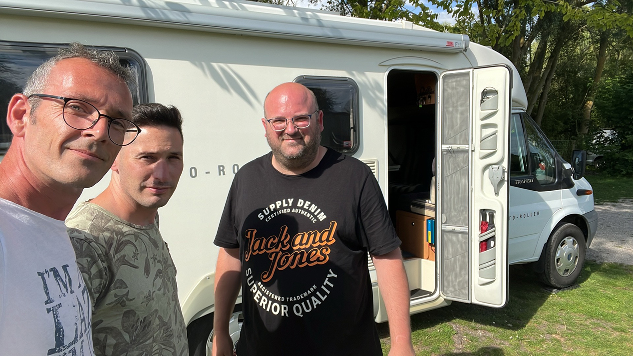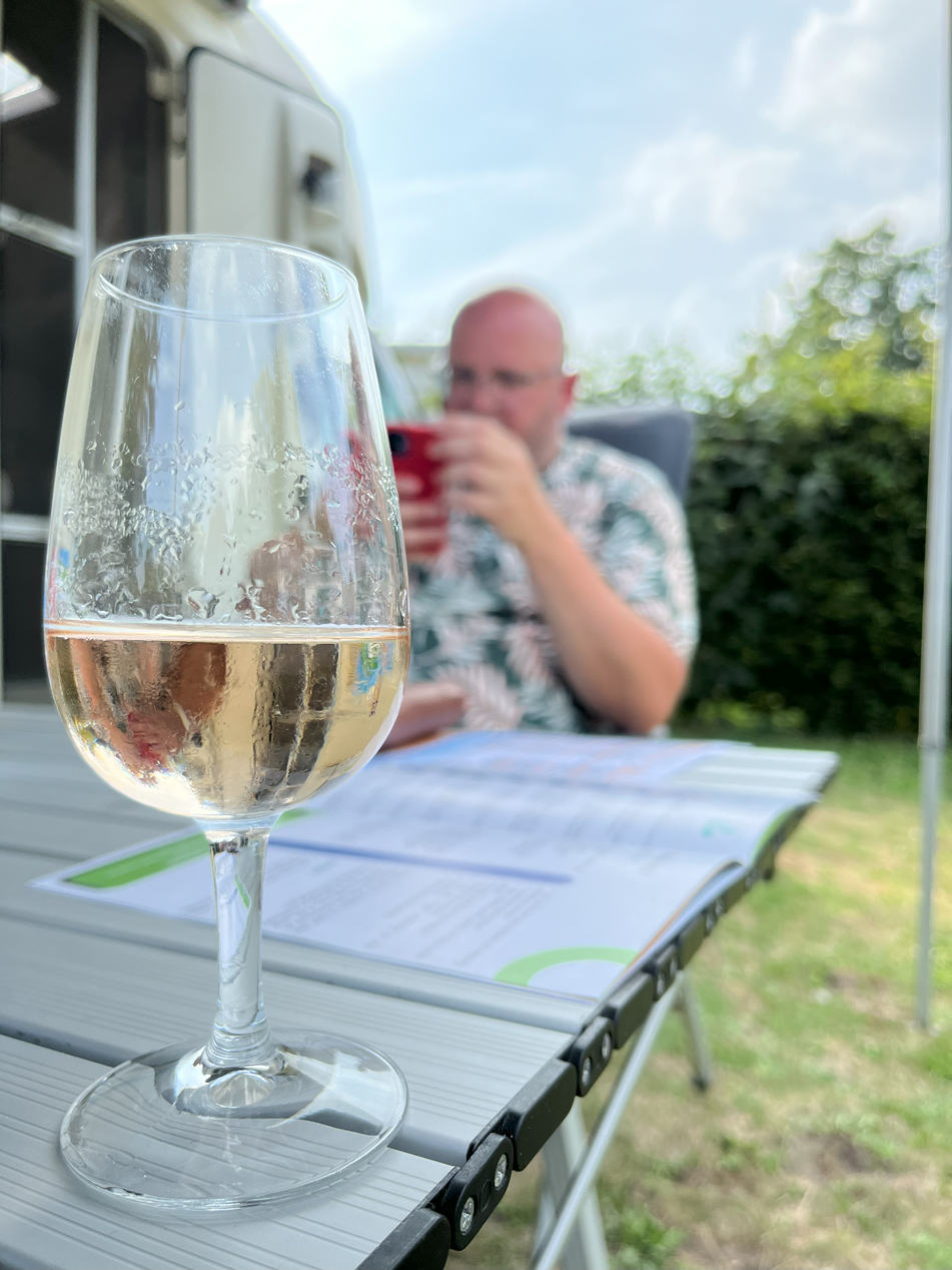 Vervuld met simpel vakantiegeluk breng ik mijn twee schone slapers naar de eerste bestemming. Het rijden begint vanaf Douaai ook op hun chauffeur te wegen, want het werd gisteren toch een korte nacht omdat er na de frieten en het bier nog wasmachines en droogkasten draaiden. Quasi uitgeslapen arriveren zij bij de ingang van de camping. Geen moment te vroeg, want mijn concentratie is nu echt wel weg. “Allez Cris, vooruit ga ons inchecken. De reservatiebevestiging? Kijk in uwe mail en haast u!”