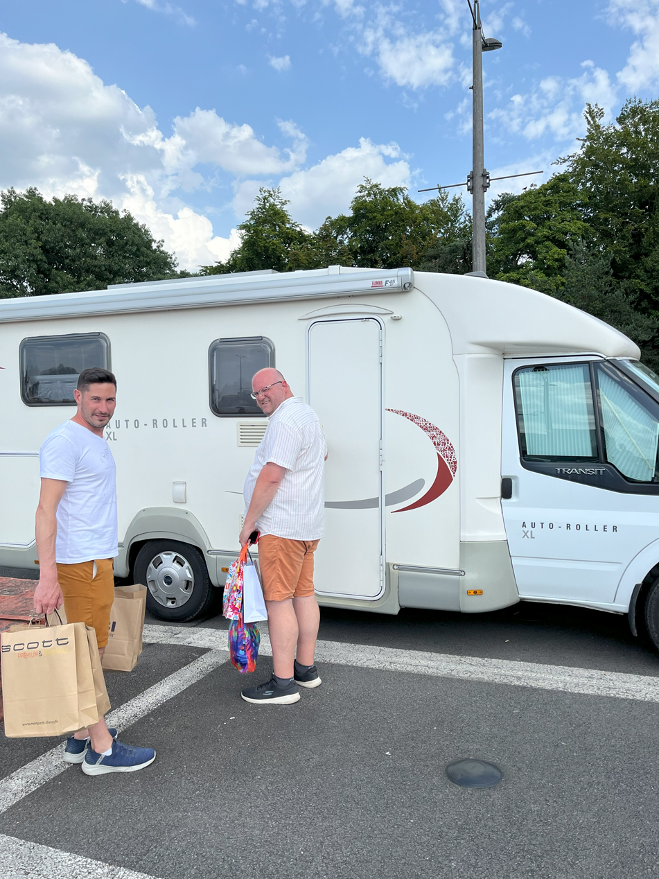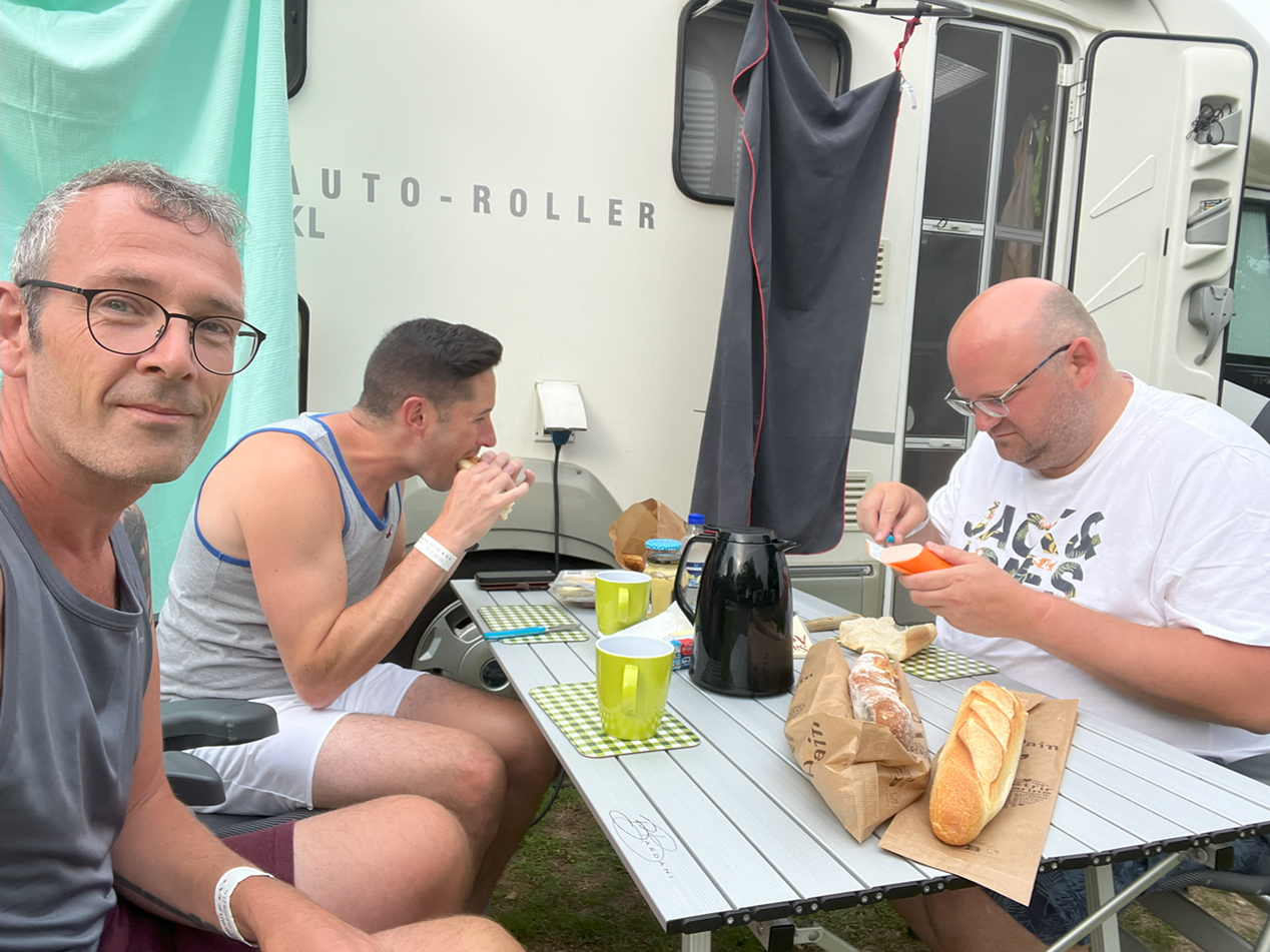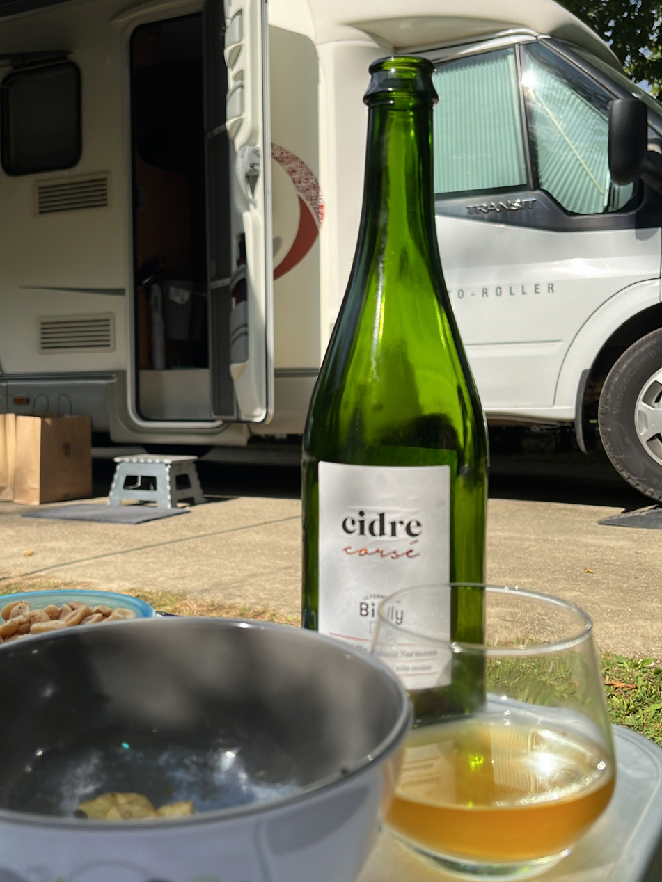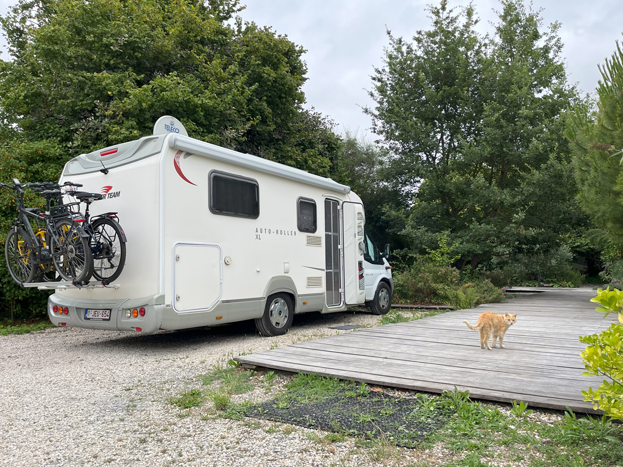 De fietsen op de verwrongen drager geven zelfs met het extra gewicht van de accu gelukkig géén krimp. Als we thuis zijn ga ik gewoon een nieuwe beugel van Fiamma bestellen of een gans nieuw systeem. Misschien zijn er ondertussen modellen die uitgevoerd zijn om meer gewicht te kunnen torsen. De eerste keer dat de Autoroller nog eens met fietsen achterop van de hof af rijdt, zal waarschijnlijk pas in de paasvakantie van 2025 zijn. Dat er volgende zomer opnieuw drie e-bikes meegaan is nog geen verworvenheid. Als het van Cris afhangt gaan we dan weer drie weken op vadrouille met onze compagnon-de-route, dat heeft hij al een paar keer laten vallen de voorbije dagen. Wouter zei niet neen, wel iets over de provence waarschijnlijk omdat ze daar zijn ‘josé’ fabriceren. Si Dieu le veut…