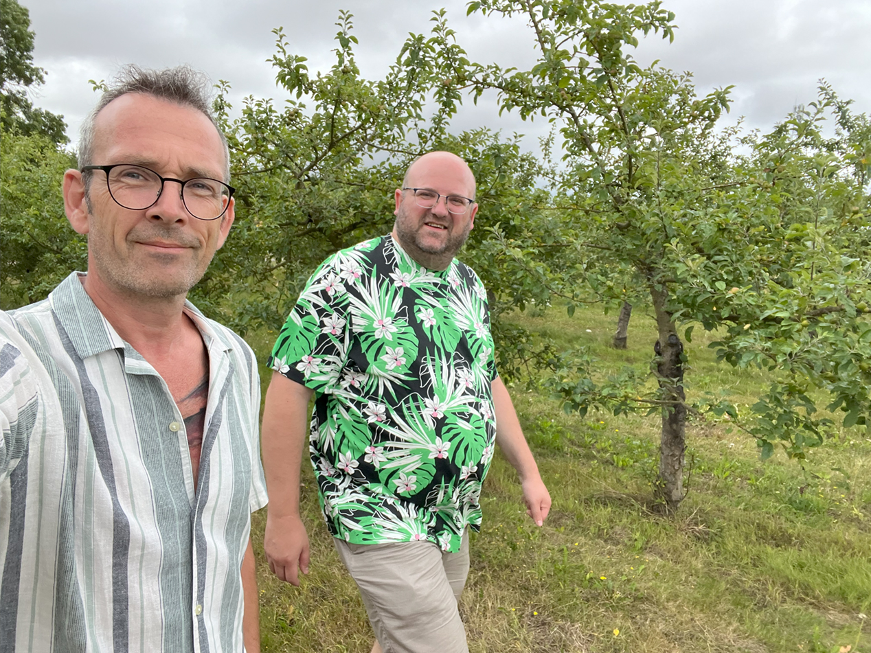 Er is nog een uurtje tijd vooraleer de rondleiding door de kelders en de appelgaarden begint dus warmen we soep op die nog mee naar Friesland is geweest. Zo een brik soep weegt ook wel wat, alweer twee kilo minder! IJdele hoop, want dat wordt straks in veelvoud met calvados en cider gecompenseerd. Na die lichte lunch melden we ons opnieuw bij Nemo en de jongste kornuit van het familiebedrijf rekent meteen drie bezoeken af. Gids van dienst is vandaag de keldermeester en aan zijn uitleg te horen een krak in zijn métier. Nemo blijkt niet gespeend van valse bescheidenheid en toont ons de weg naar de schuur: “Je vous en pris d’attendre votre guide, malheureusement pour vous c’est pas moi.”