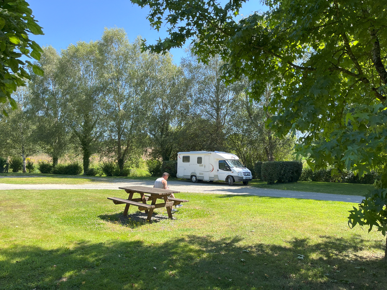 Bij het servicepunt van de Aire de Camping-Car staat al een rij vertrekkenden te drummen. Wij hebben tijd en ik wil het chemische toilet lozen om nog één nacht vrij te kunnen staan. Daarna blijven we volgens de haastig in elkaar gestoken planning een paar nachten op de camping in Saint-Benoît. Die moeten we straks misschien nog proberen reserveren, want met ons drie ben ik graag zeker van een plaats. Alleen met Cris steekt het mij niet zo nauw, dan trekken we vaker rond à l’improviste. Onze keukenpiet zorgde ook dit jaar voor een paar côte à l’osssen van een kilootje of drie. Zijn kooktalent, zelfs op een ordinaire Campingaz Party Grill, is ongezien.