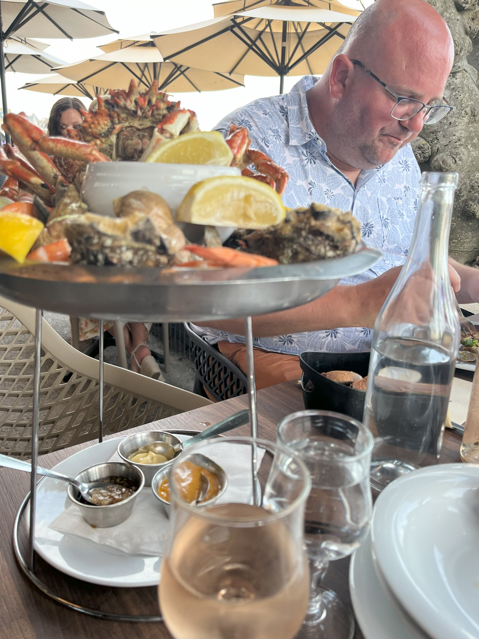 “Ineens bestellen voor morgen?”, vraagt Cris zich nu al verlekkerend op zijn moules-de-bouchot. Het ganse triumviraat stapt naar binnen om een plateau fruits de mer uit te kiezen. Dat kost hier echt géén geld, vorige keer haalden Mieke en ik een Édulis af want iets anders ging zonder te bestellen niet. “Wat denkt gij, Wouter? Als ge graag een kreeft wilt dan nemen we Le Vénus.” “Gij zijt niet goed zeker, Stijntje, 40 euro voor een halve homard!” “Gij zijt mij veel meer waard dan een halve kreeft”, probeer ik nog. Hij weet dat, maar houdt voet bij stuk: “Neem die La Perle met een krab”. Hij krijgt van mij alles wat zijn hartje begeert, maar heeft gelijk. De meerprijs is té zot en de beste krab heeft veel meer smaak dan een middelmatige kreeft weet onze ervaren kok.