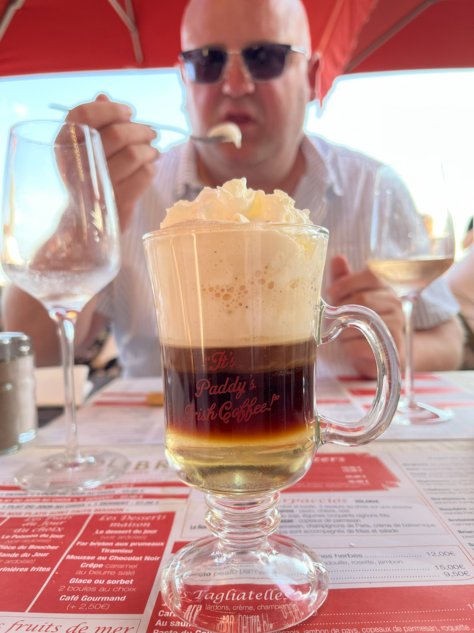 Het is al een eind over de middag en onze koopjes hebben de appetijt aangescherpt. Aan het einde van de winkelstraat bij Le Celtic zijn er nog net twee bistrotafeltjes en vier stoelen vrij op het terras. De garçon schuift ze tegen elkaar en brengt ons drie gourmetburgers met een fles josé, zorgeloos genieten. Er staan zelfs Espresso Martini’s op de kaart, de perfecte afsluiter van een late lunch.
