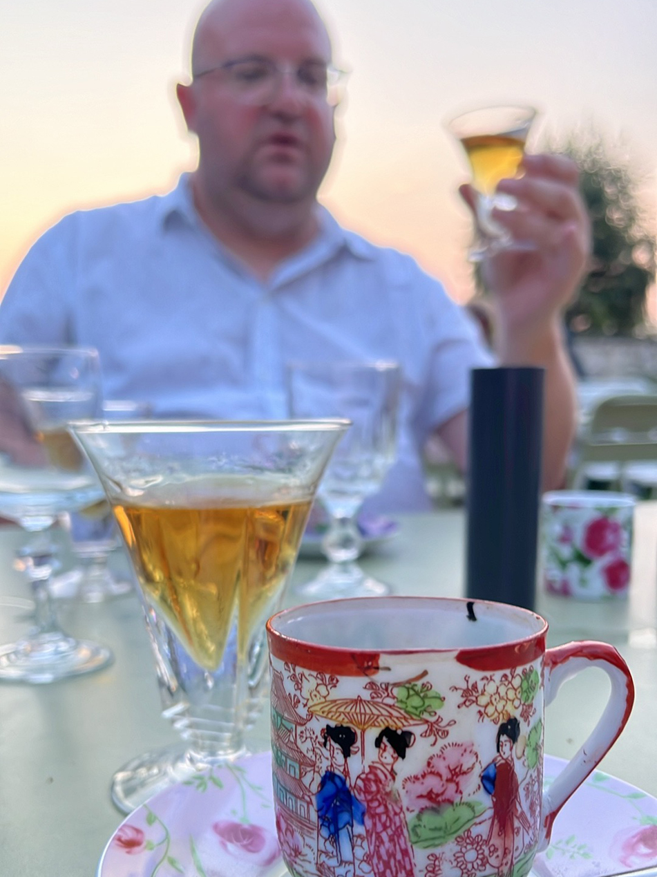 Een schapraai met Calvados Hors d’Age en millésimes vult er een ganse muur. Ik heb nog geen verjaardagscadeau voor mijn jarige wederhelft en laat daar nu net een fles van 1981 staan. ‘Vintage Calvados’, afkomstig van cider uit één oogstjaar, draagt met fierheid het jaartal op het etiket. “Voulez-vous gôuter?” vraagt de vriendelijke mevrouw nog een keer. Zelfs van die oudste appelsapjes hebben ze blijkbaar een open fles. Prijzig wel en 43 is nu niet direct een memorabele leeftijd, hij wordt het anderzijds ook maar één keer. Ik twijfel nog een moment. Als het niet om de jongste gaat, zit ik op mijn centen. La dernière bouteille, blijkt een overtuigend argument. “C’est son anniversère aujourd’hui”, gebaar ik naar Cris, “tu peux l’emballer comme cadeau?”