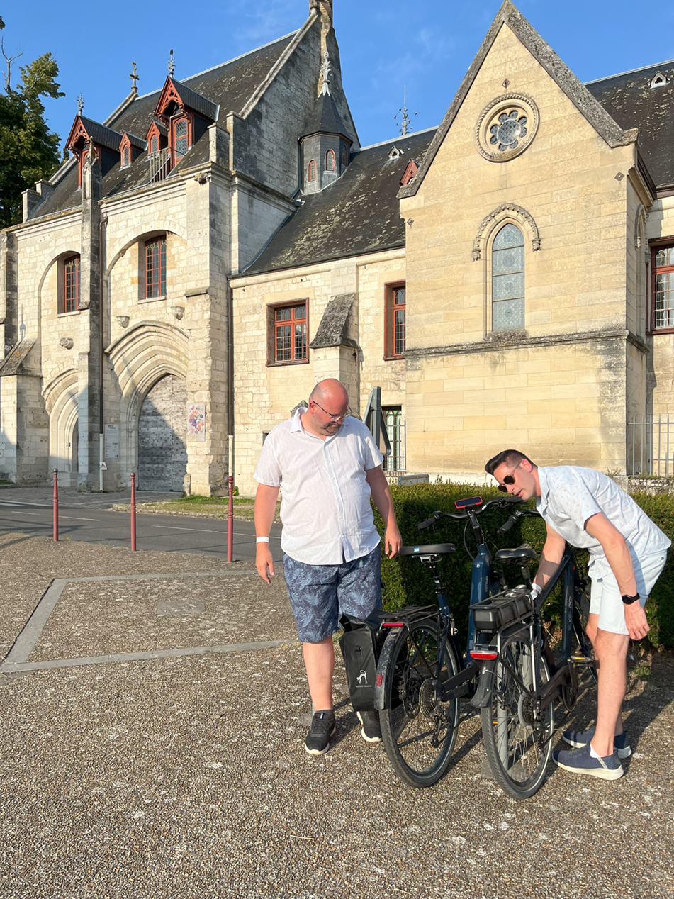 Een geluk bij een ongeluk, het is 65 km dichter bij huis! “Al een chance, voor het zelfde geld had ik ergens een Camping du Lac in de Provence gereserveerd,” lach ik een beetje groen. ’s Nachts nog een booking vastleggen is dus niet altijd het slimste idee. “Google gaf mij die online reservatiepagina en ik dacht dat het de juiste was, want er stonden foto’s op van zo’n tente bivouac waar we in Pont l’Évêque eens naast hebben gestaan.” Niks gekort, dus overleggen we met z’n drie even: annuleren of toch gewoon daar naartoe. “We zijn daar op een grijze herfstdag in 2011 eens geweest, in Jumièges. Daar was een abdijruïne, die toen gesloten was net als de horecazaken eromheen.”