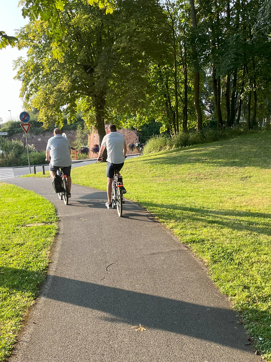 Rond 11 uur willen we graag vertrekken om Billy naar zijn gastgezin te brengen. Wouters broer zal voor de kleine duivel zorgen terwijl wij het baasje nog eens mogen soigneren. Langs Gent en Rijsel naar de Franse péage tot de afslag Amiens-Longpré. Vanaf de rotonde is het nog anderhalve kilometer naar Camping Parc de Sygnes, daar zijn Cris en ik al eens vaker voor een nacht geweest aan het begin of het einde van een vakantie. Aanmelden, motorhome installeren, fietsen eraf en dan onder het lover via de Quai de la Somme naar de stad. Om 19u30 worden we daar voor een verjaardagdiner verwacht. Gisteren kwam er al voor de tweede keer een mail van Ail des Ours om onze aanwezigheid te bevestigen. Ze willen precies echt wel dat we komen.
